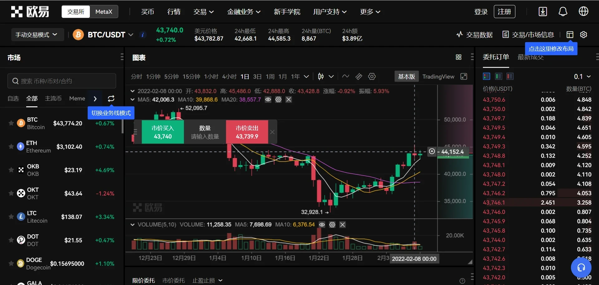 比特币在2022年初展现出强劲的反弹动能,价格从3.3万美元低点迅速回升至4.5万美元上方,形成明显的上升通道。从技术指标来看,MACD(指数平滑异同移动平均线)在零轴上方持续金叉,表明市场多头力量增强,且成交量在上涨过程中明显放大,显示出资金的持续流入。此外,比特币在4万美元整数关口获得支撑后,形成关键阻力位突破,技术形态上呈现“头肩底”反转格局,进一步强化了市场看涨预期。值得注意的是,比特币的波动率指数(BVOL)在这一阶段并未同步上升,说明价格波动更多由理性资金推动,而非短期投机行为主导。