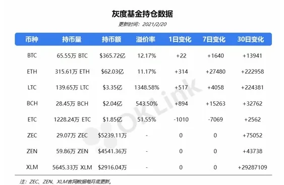 灰度作为全球最大加密资产管理机构,其资产管理规模在2021年2月突破420亿美元,达到424亿美元。数据显示,灰度比特币信托(GBTC)近30日新增持仓13,941枚,以太坊信托同期新增222,958枚,显示出机构资金持续流入加密市场。灰度的扩张不仅增强了市场的流动性,也提升了传统投资者对数字资产的信任度。其资产管理规模的增长,标志着加密货币正逐步成为主流资产配置的一部分,为后续更多机构投资者入场奠定了基础。