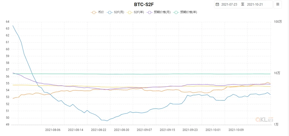 稀缺性与价值之间的关系是比特币投资逻辑的核心,而S2F(Stock-to-Flow)模型正是基于这一逻辑构建的量化评估工具。该模型通过将现有比特币存量(Stock)与新增供应量(Flow)的比值映射至价格曲线,试图揭示稀缺性变化对价格的影响。在2021年减半后,S2F模型曾多次成功预测价格趋势,使其在市场中获得广泛认可。然而,模型并非绝对有效。2021年6月,Plan B基于改良后的S2F模型预测10月比特币价格将突破63000美元,这一预测虽在短期内实现,但同期也出现了模型失效的案例,表明市场情绪、宏观政策及外部事件等非稀缺性因素对价格的扰动不容忽视。因此,S2F模型更适合作为中长期趋势参考,而非短期交易依据。
