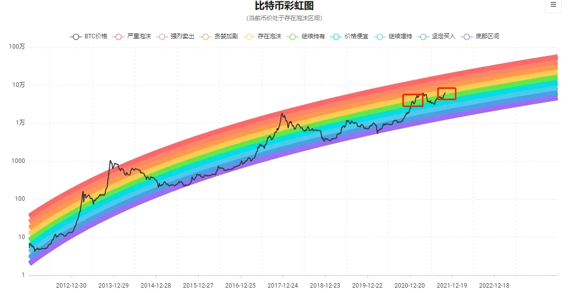比特币彩虹图通过颜色梯度反映价格偏离程度,当前价格已从“继续持有”区域进入“存在泡沫”区域,表明市场情绪趋于乐观。历史数据显示,2021年1月比特币也曾进入该区域,随后出现回调但未改变牛市趋势。更早的2017年牛市则是在进入“严重泡沫”区域后才见顶。当前市场的特殊性在于,机构资金的深度参与和ETF等合规金融工具的引入,使价格支撑结构较以往更具韧性。因此,尽管技术指标显示泡沫风险上升,但市场结构的演变可能延缓泡沫破裂的时间窗口。