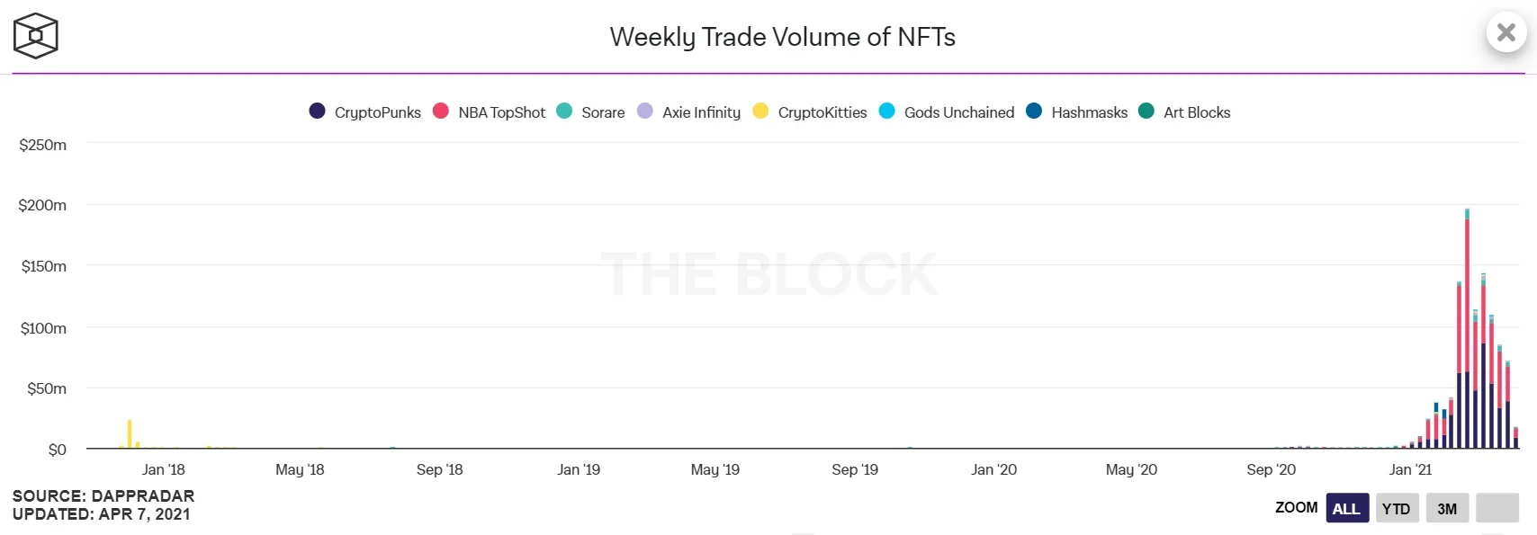 2021年4月,加密货币总市值突破2万亿美元,较年初增长163%,较上一轮牛市峰值(8500亿美元)增长近140%。这一里程碑标志着加密资产从边缘资产向主流资产的过渡。比特币市值突破1万亿美元,占整体市值的54%,以太坊紧随其后,占比12%。前五大加密货币合计占据73%的市场份额,显示出市场集中度依然较高,但资金开始向中长尾资产扩散。
