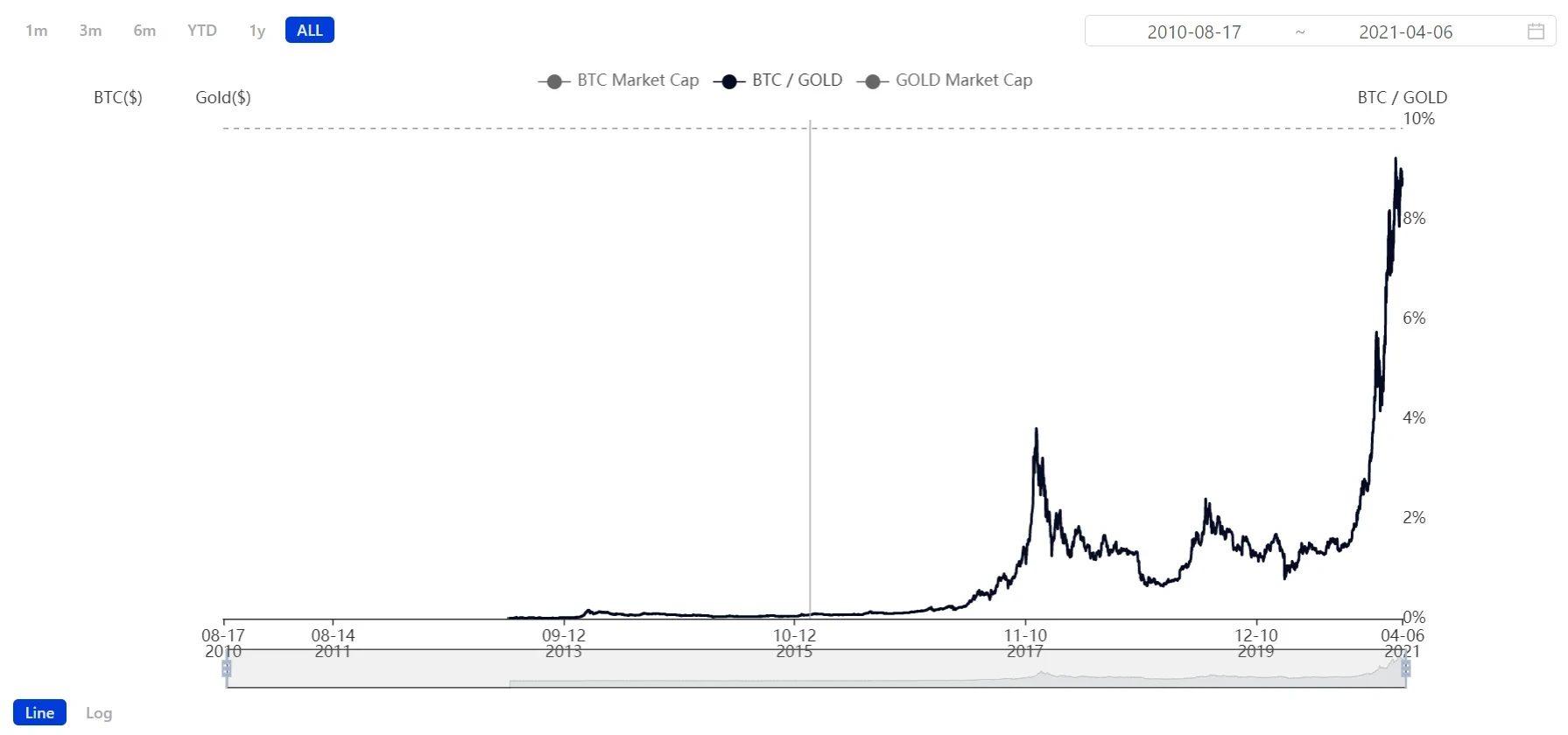 黄金长期以来被视为传统避险资产,在经济不确定性加剧时往往受到投资者青睐。然而,自2020年以来,比特币展现出更强的抗通胀属性和资本增值潜力。尽管黄金在2020年8月达到历史高点后进入回调周期,比特币则在此期间上涨近400%,显示出更强的资产保值与增值能力。市场数据显示,比特币市值已突破1万亿美元,达到黄金市值的约10%,其作为“数字黄金”的地位正逐步确立。