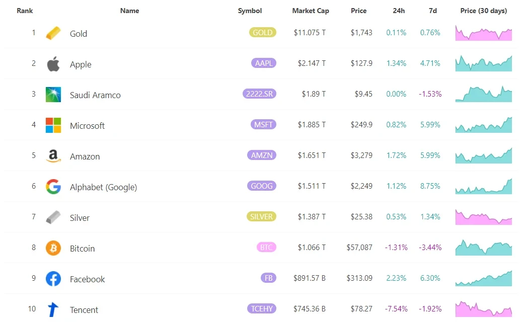 ▌比特币与传统贵金属市值对比
